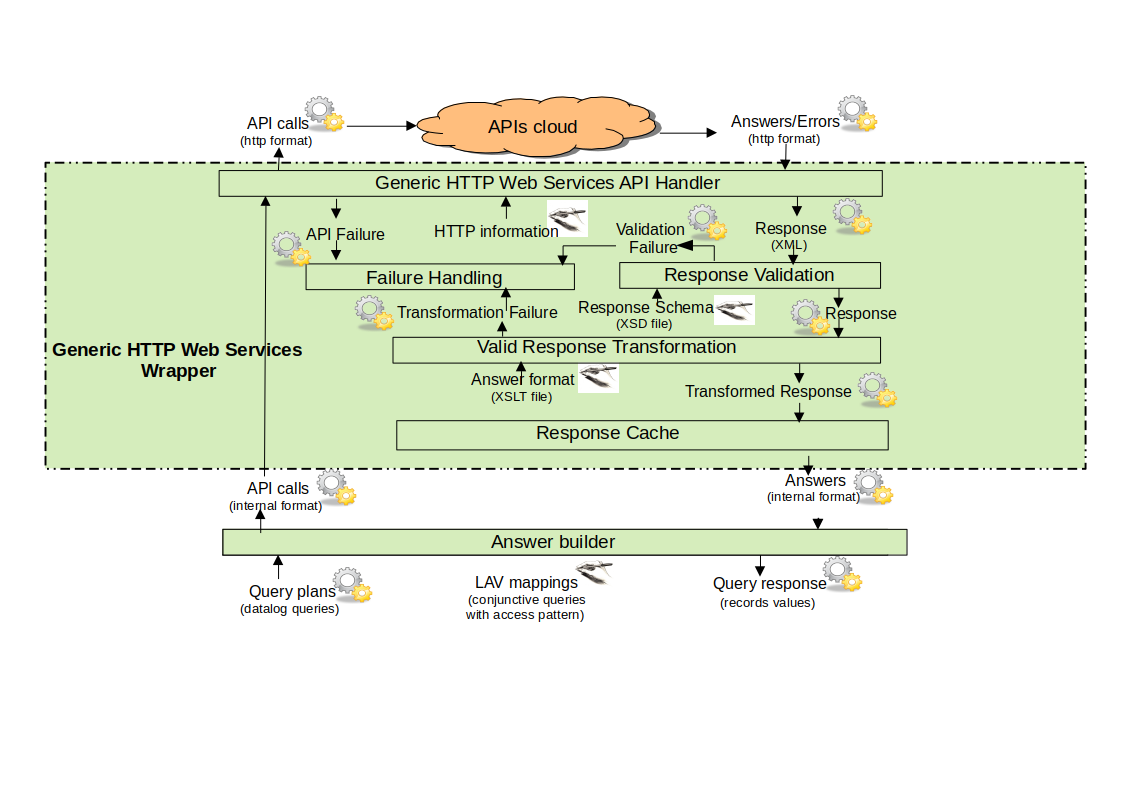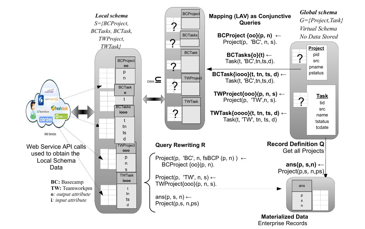 - Queries over global schema must be translated to API operation calls