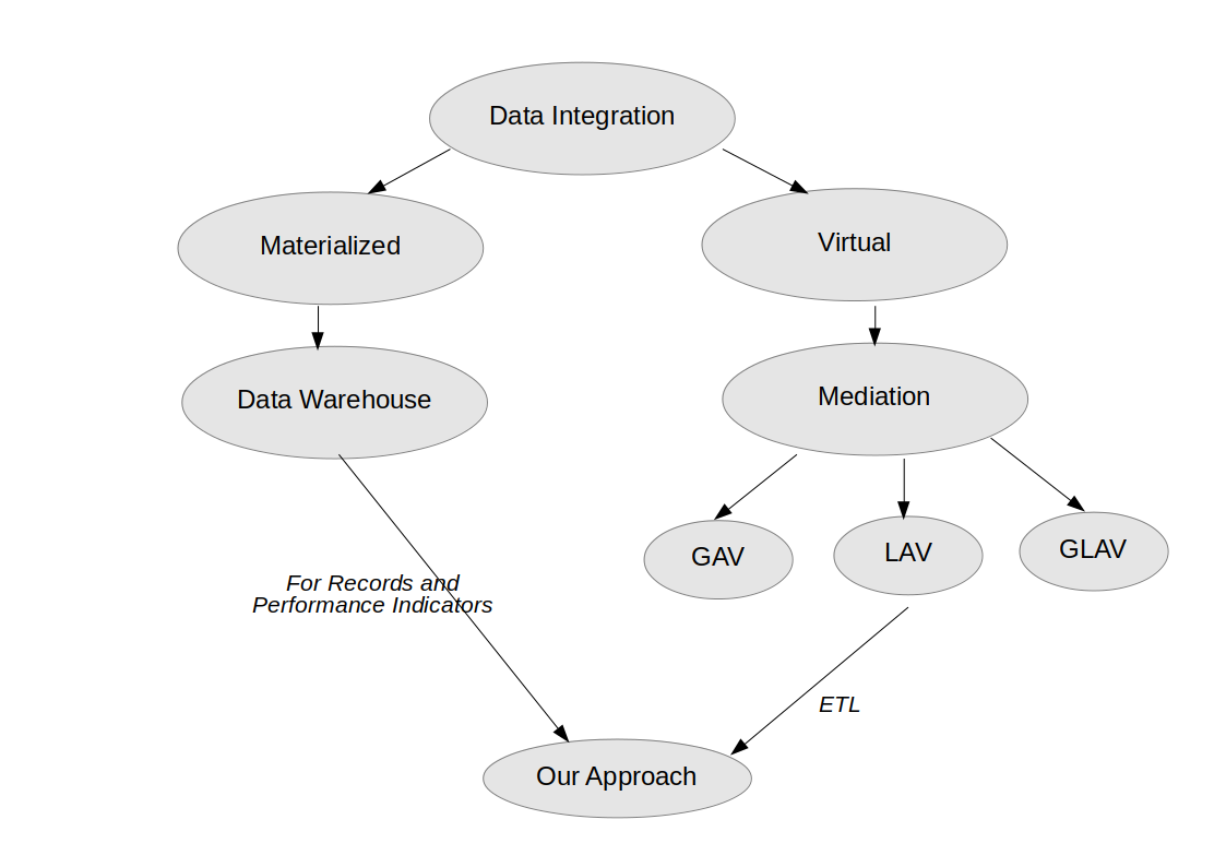 - GAV (Global as view): Global schema is defined using local schema relations