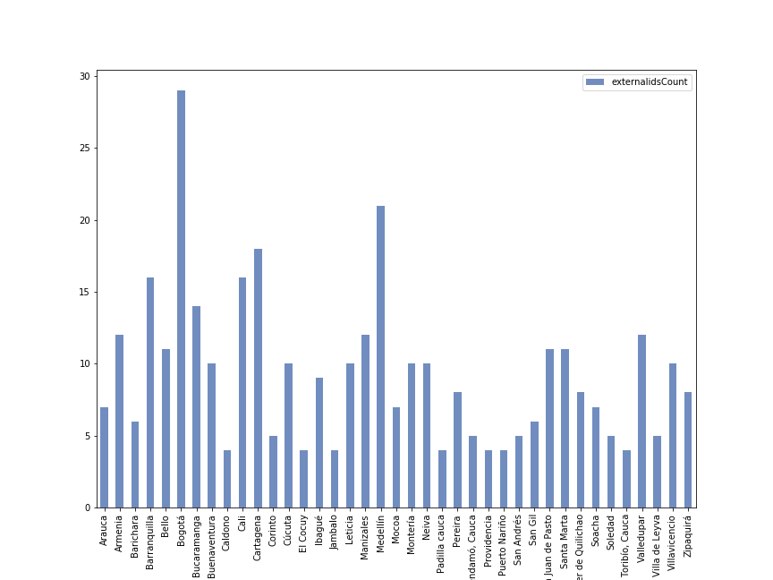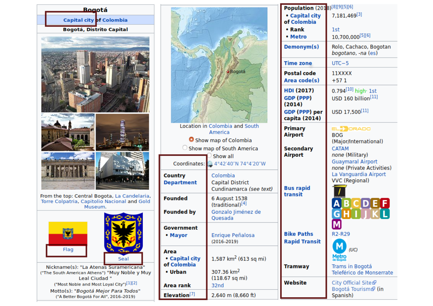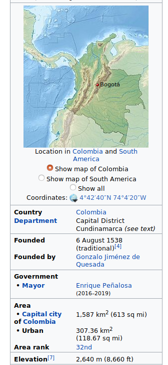 | 2. | Important departmental capitals | Bogotá (Q2841), Barranquilla (Q62823), Cali (Q51103), Bucaramanga (Q243766), Medellín (Q48278) |