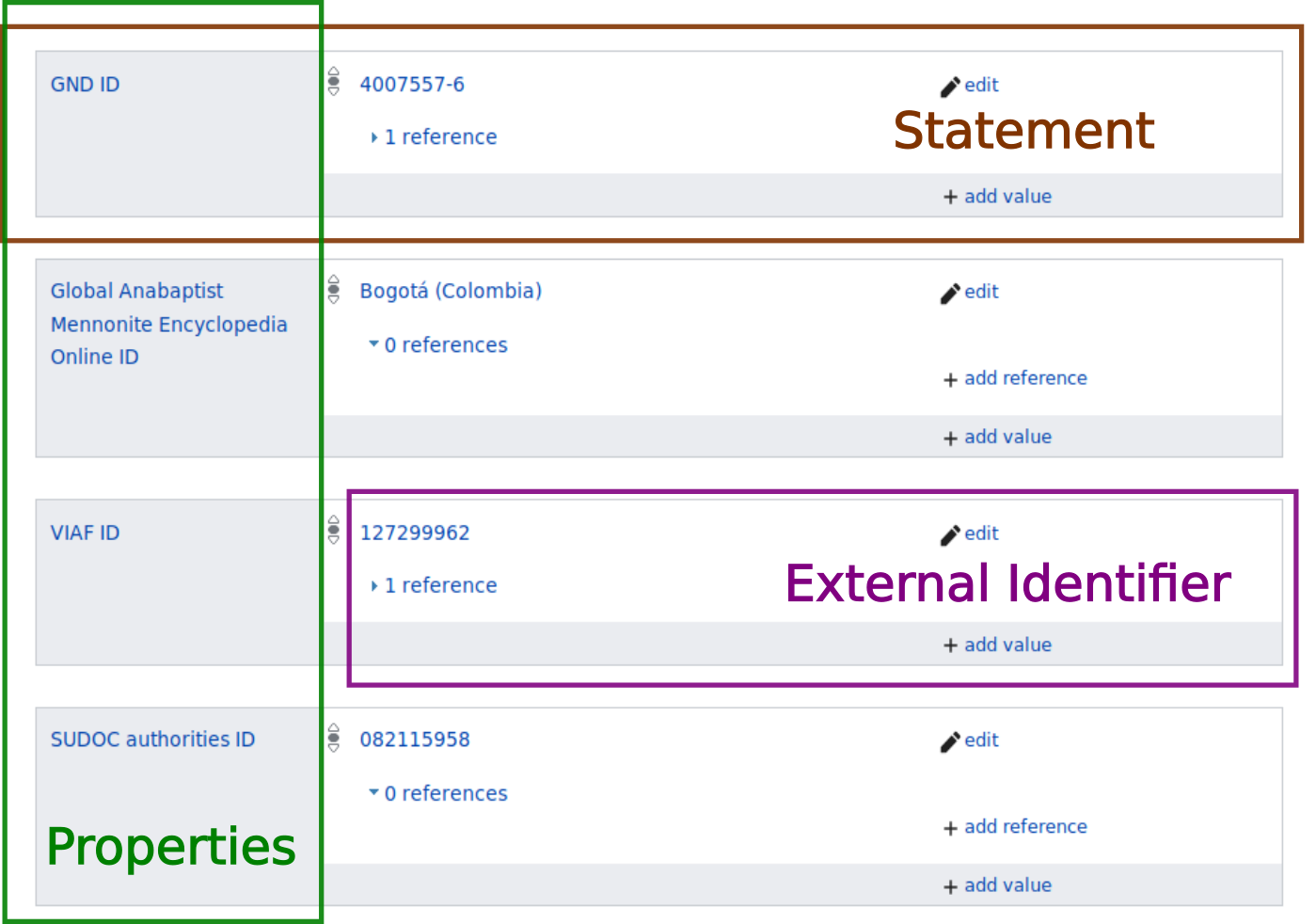 | Measure | Statements | References | Inbound Links | Wikimedia articles |