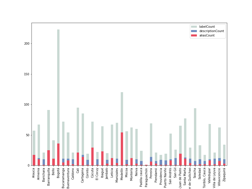 | 4. | Touristic cities | Cartagena (Q657461), San Andrés (Q134678), Providencia (Q681111), Leticia (Q214913), Puerto Nariño (Q767738), Santa Marta (Q209016) and El Cocuy (Q1655984) |