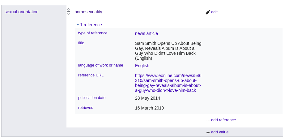 | sexual orientation (P21) | Wikidata ID and references |