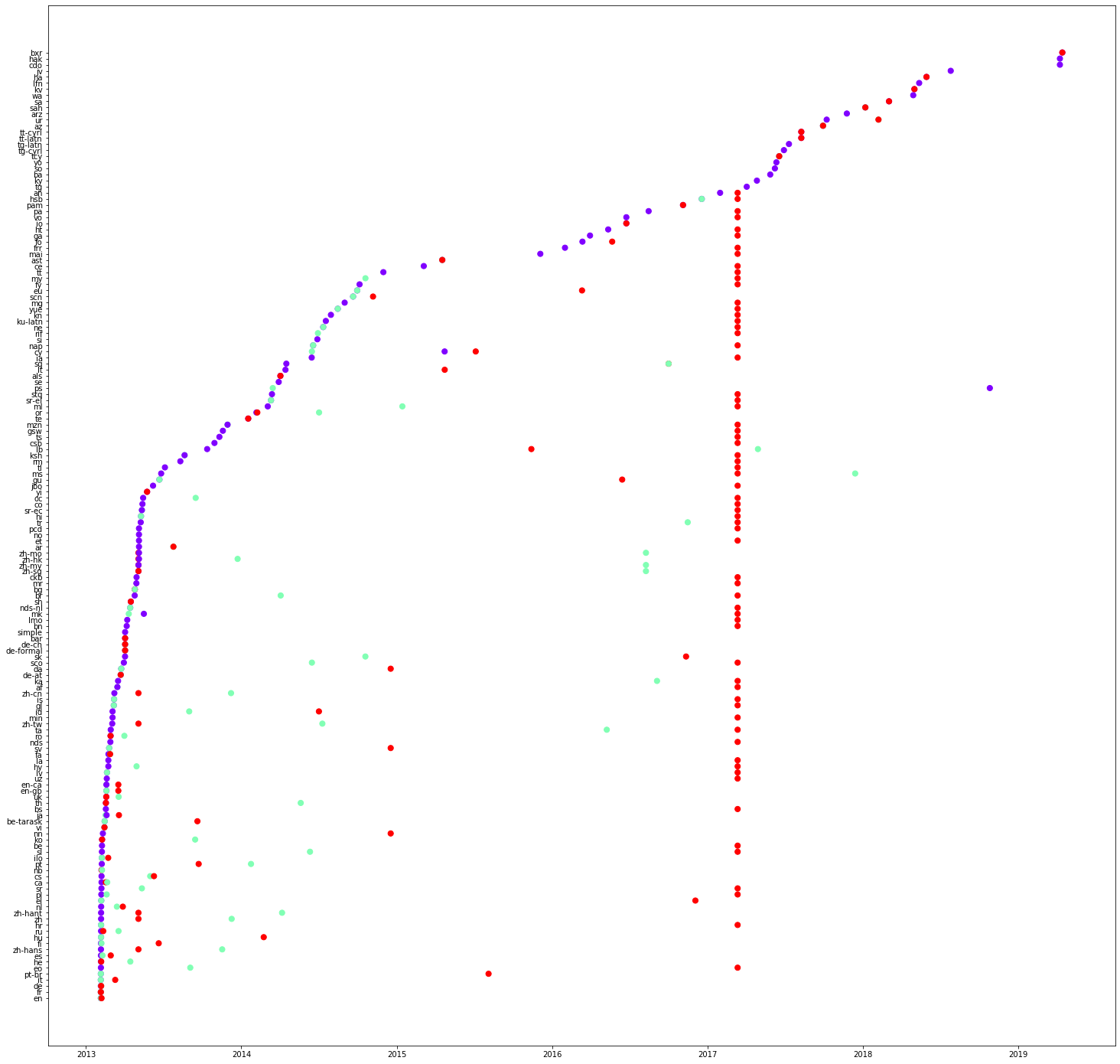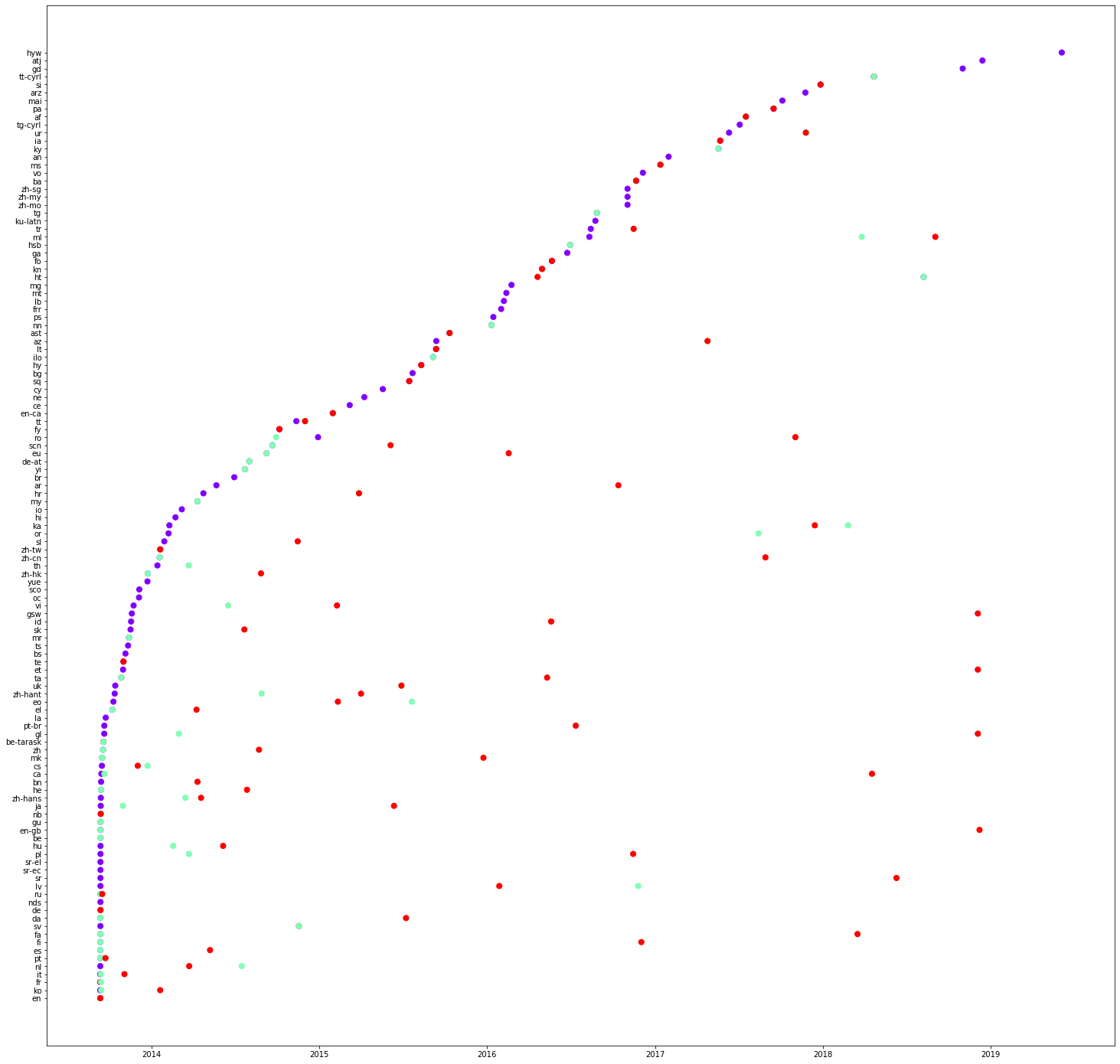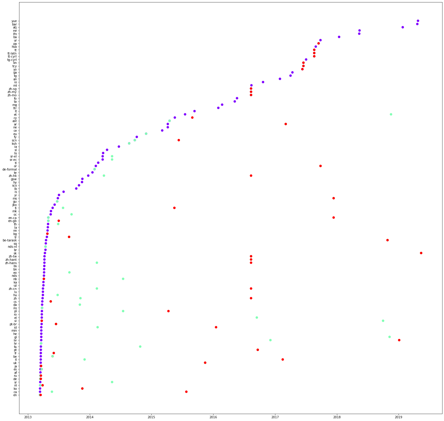 Now, we plot another graph, this time, language on the y-axis and time on the x-axis.
