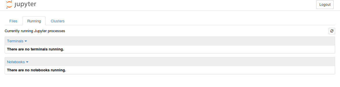 Click on the tab 'Running'. You see no notebooks running (if it's the first time you are running jupyter).