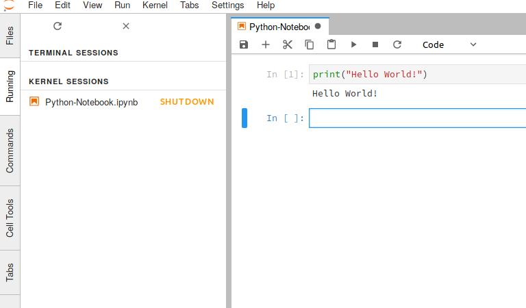 Cliquez sur 'Python 3' sous 'Notebook' et écrivez le code "Hello World".