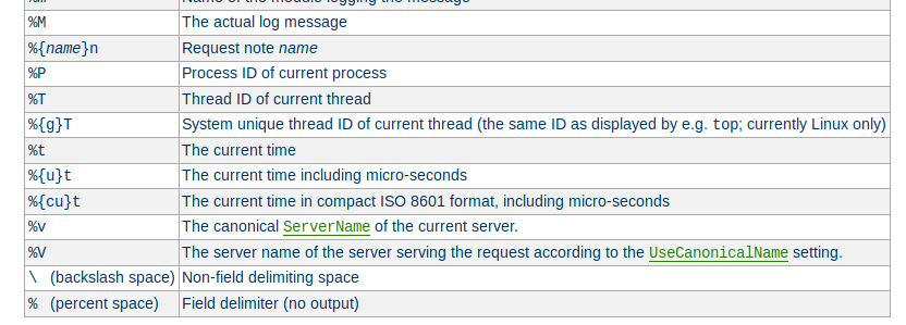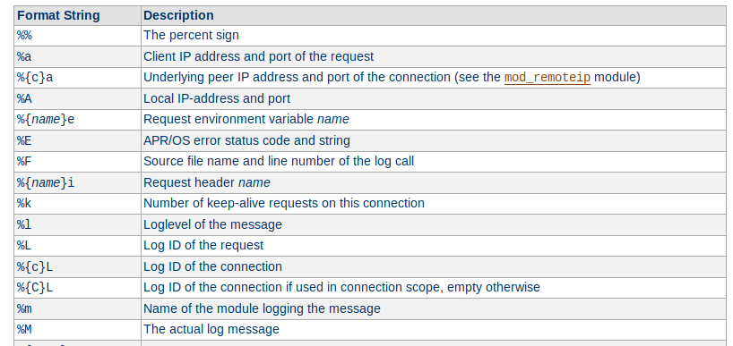 LogFormat "%h %l %u %t \"%r\" %>s %O \"%{Referer}i\" \"%{User-Agent}i\"" combined